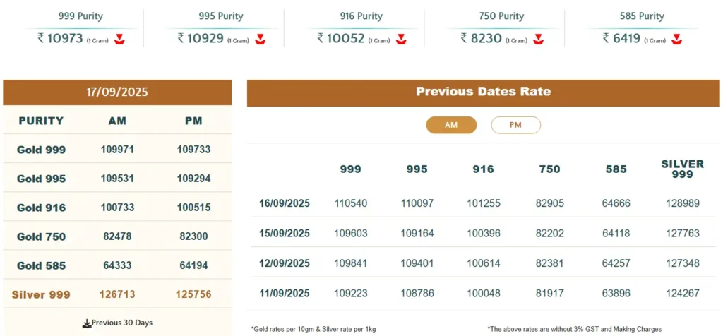 - मुंबई: 24K सोना ₹1,09,900 प्रति 10 ग्राम